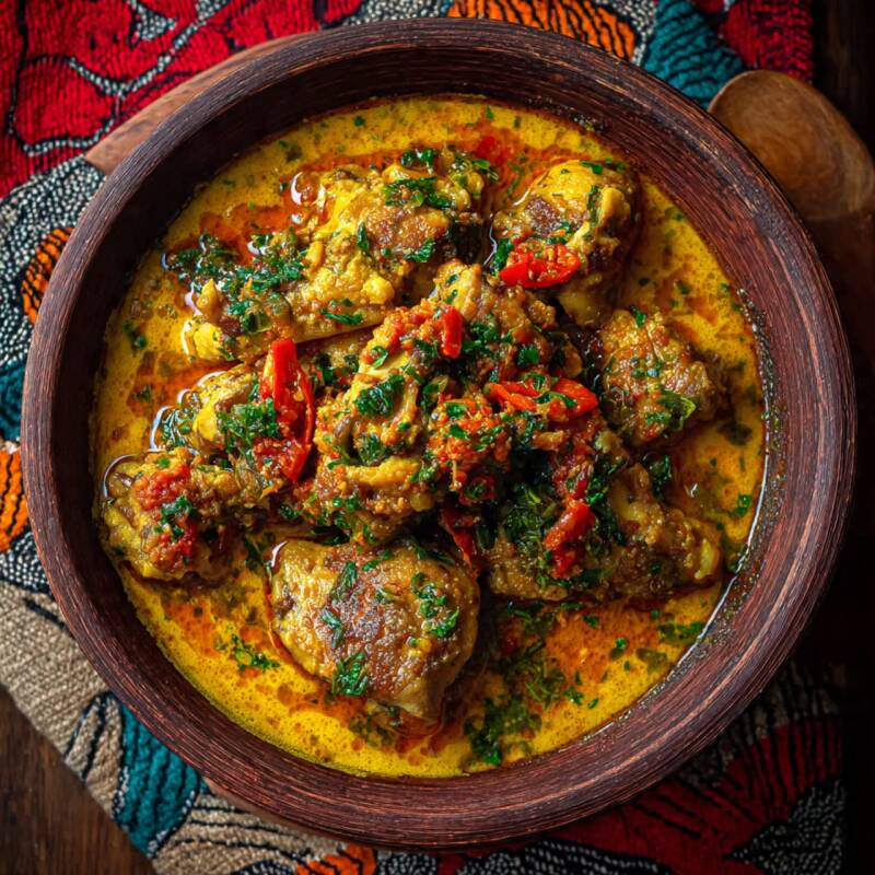 Taste for salt and spice. Serve hot with rice, fufu, or crusty bread.